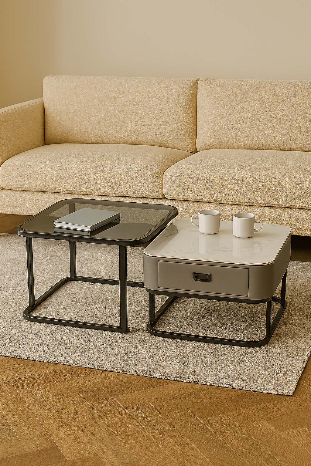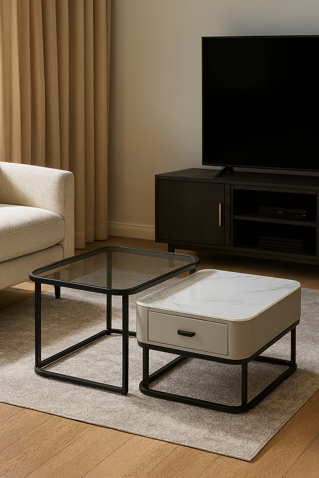 This center table set isn’t just about good looks—it also excels in maximizing functionality. The spacious tempered glass top of the larger table provides ample room for decorative accent pieces, coffee mugs, or even board games on family night. Meanwhile, the smaller table’s drawer is a subtle yet practical feature, ideal for storing essentials like remote controls, magazines, or other small items that can clutter a space. With this functional and stylish set, you can keep your living room neat and organized while maintaining sophistication.